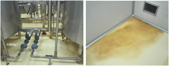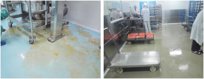 普通環(huán)氧自流平腐蝕后產(chǎn)生的污染,包括表面的劃痕,不可修復(fù)